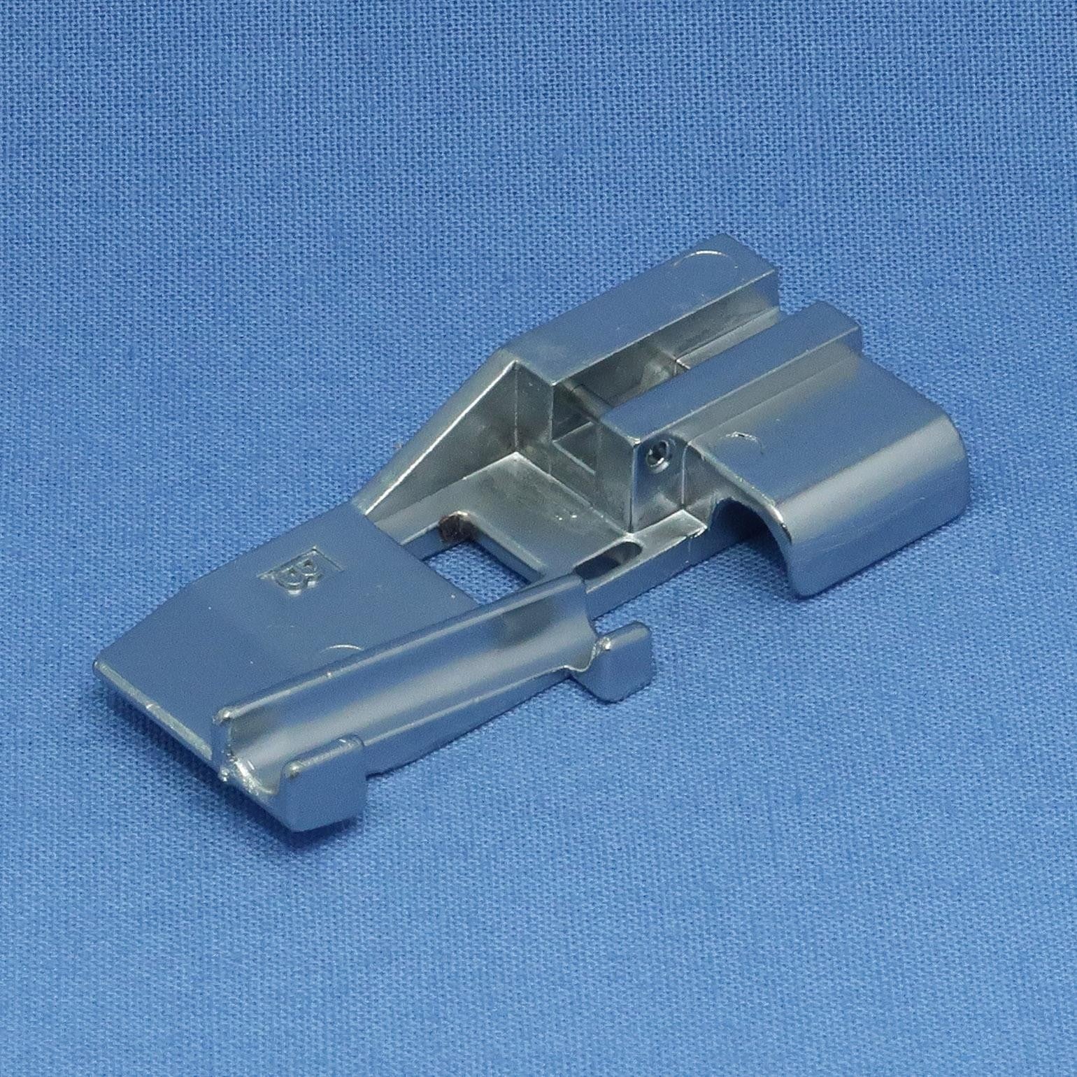 This foot is for attaching pearls, piping, cording, and more to the edge of fabric with ease and speed. This one-step foot will give all of your surface embellishments a professional finish. It can also be used to decorate your project using the flatlock-on-fold method. With a 2-thread flatlock-narrow stitch the pearls can be stitched on anywhere.