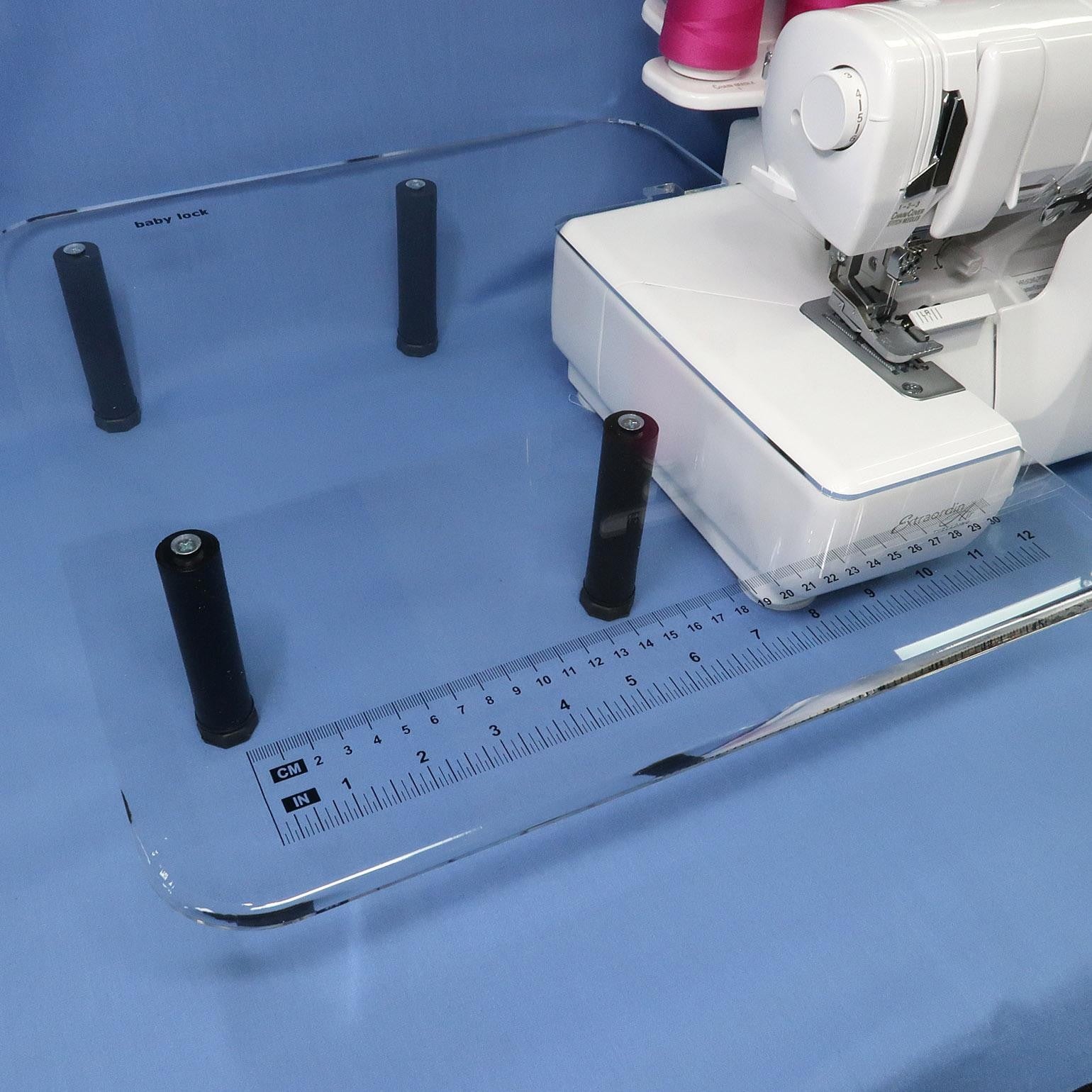 A must have accessory for those who wish to expand their workspace for larger projects. This clear extension table fits the machine perfectly to give you a large, smooth sewing surface for overlocking or coverstitch. Please note this table cannot be used in conjunction with a trim bin.