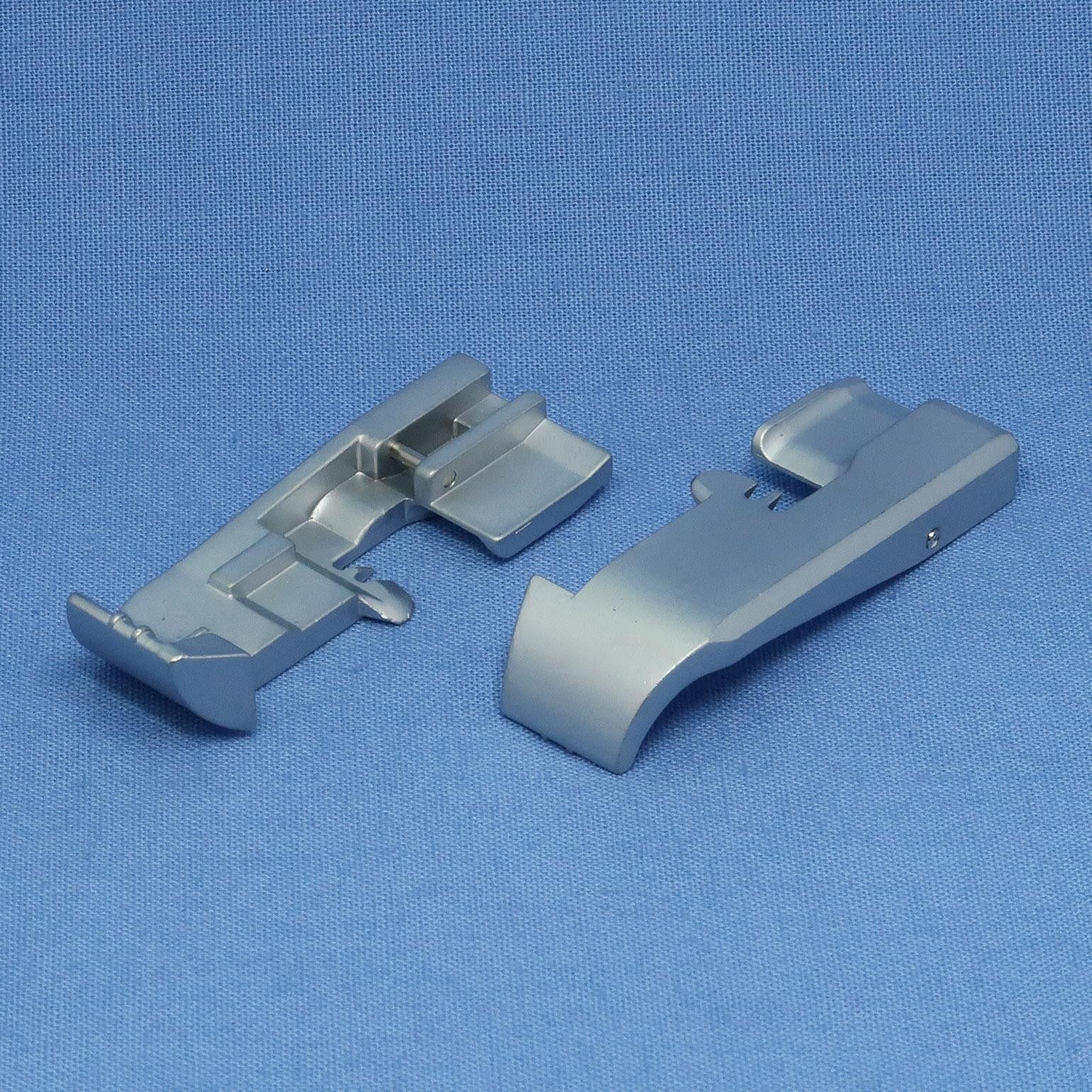 The underside of this foot is completely flat (no groove) – beneficial when crossing intersecting seams and working with bulky fabrics such as fleece.