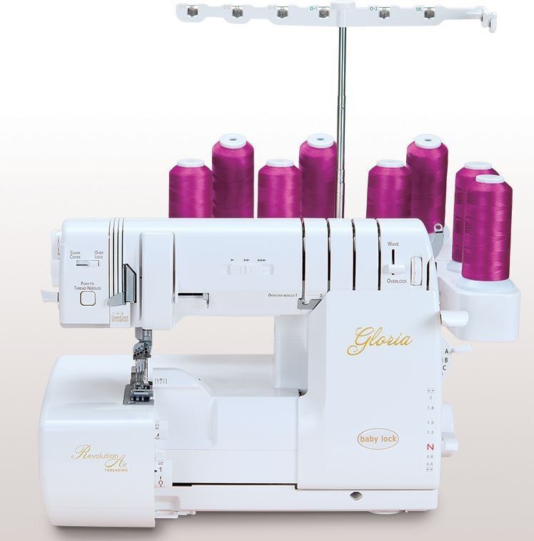 Gloria represents the pinnacle of this Baby Lock ingenuity. Gloria combines RevolutionAir™ Looper and Needle Threading, Tubular Loopers and the Automatic Thread Delivery System (ATD) with the full suite of innovative features you’ve come to expect from Baby Lock.