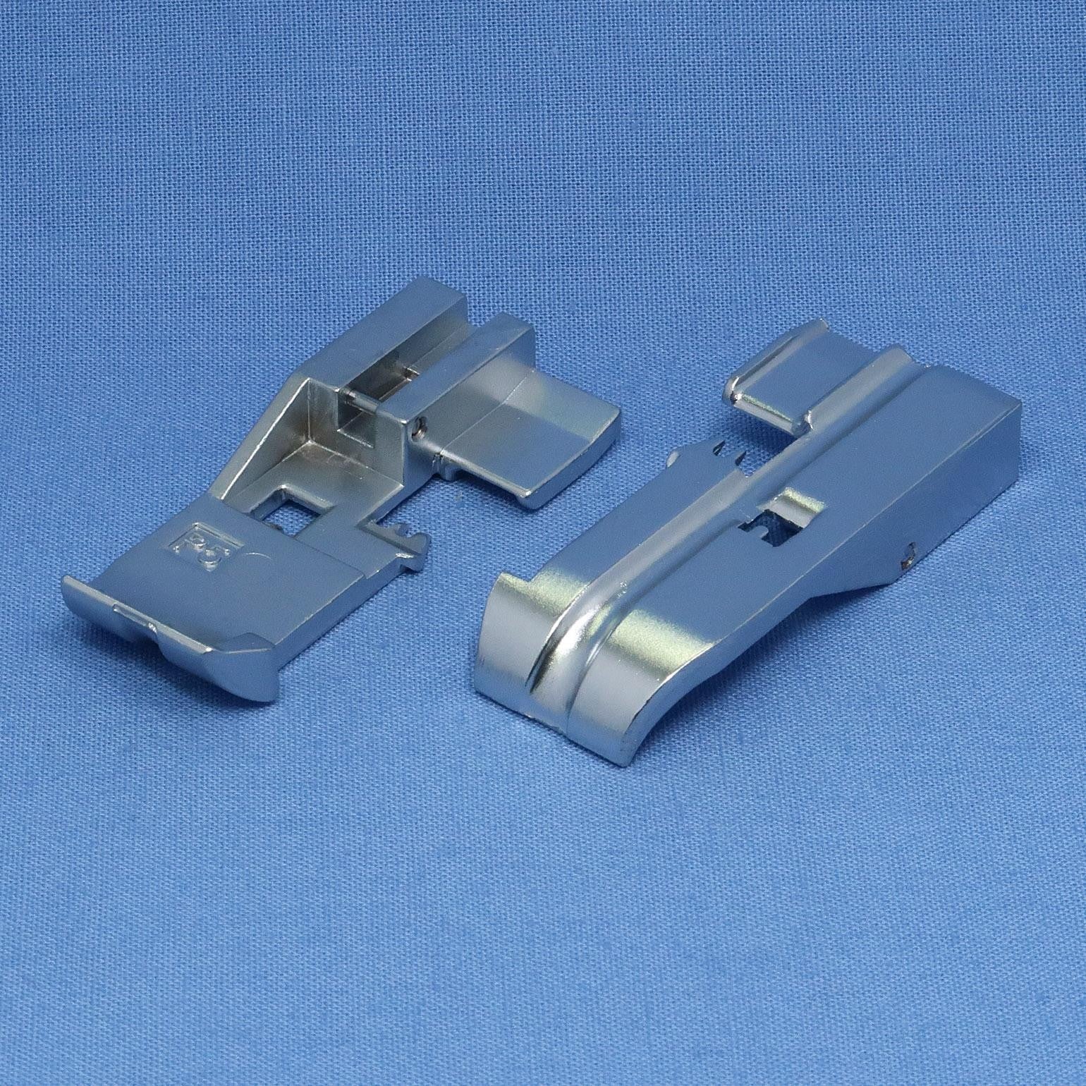 The 5mm piping foot has a larger channel than the 3mm, running under the length of the foot which enables a thicker piping to be overlocked into a seam perfectly. You can also make your own piping either with overlock stitch or using chain stitch with the needle in C2 or C3 position for 5mm cord only. You can also use the 5mm Piping Foot for inserting zippers. The 5mm Piping Foot is designed for 5mm cord.