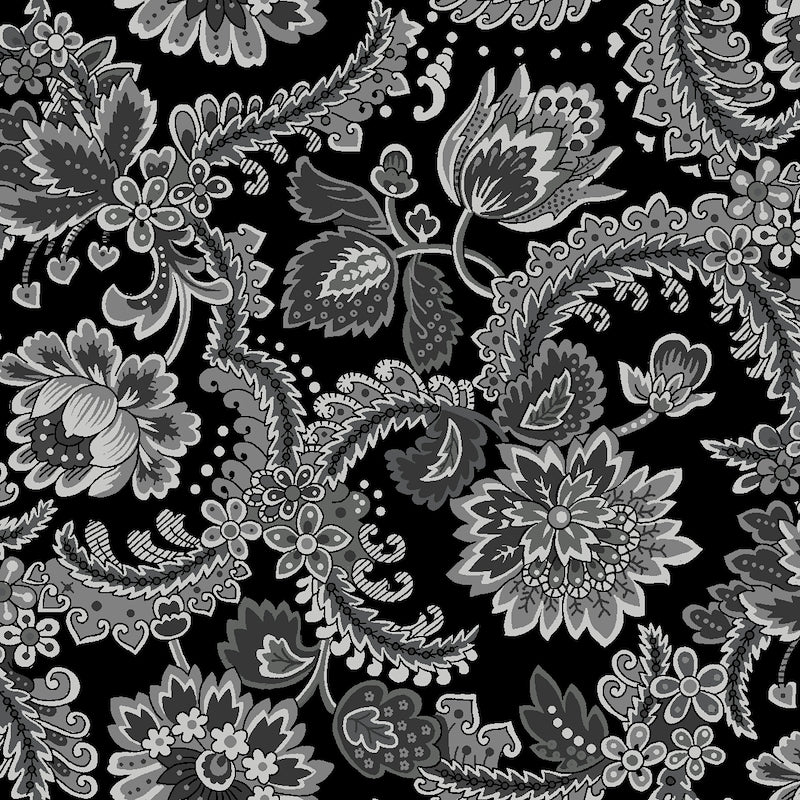 Wideback Studio E Geo Floral Indigo 108" wide (274cm) per mtr