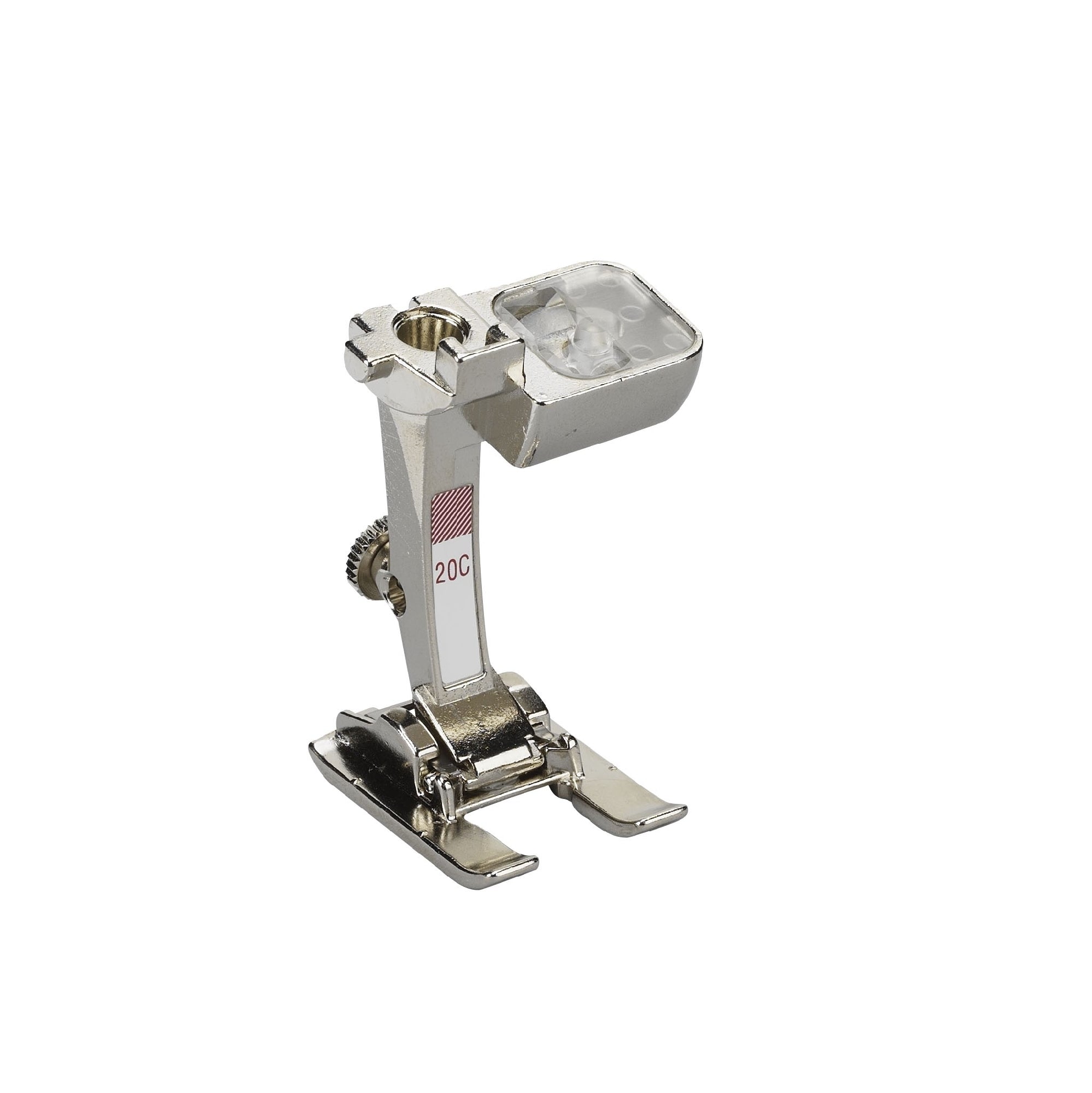 This foot is used to create appliqué and embroidery designs and for sewing over lines and patterns. The open shape ensures a perfect view of the sewing area, making this foot