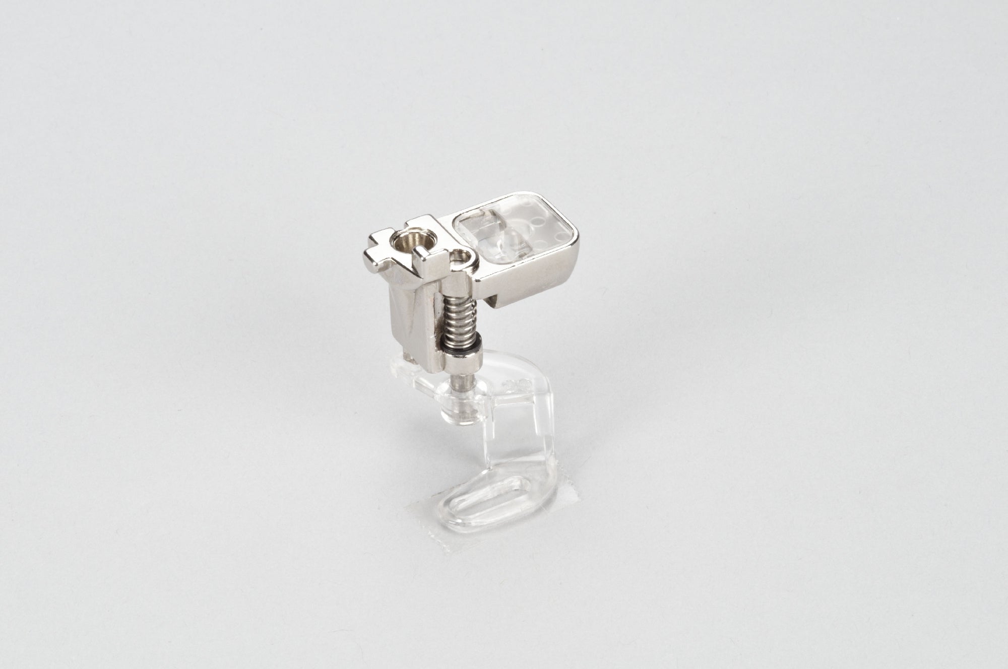 This quilting foot is used for topstitching quilts with thick and thin padding. The clear sole ensures an unobstructed view of the entire sewing area, which is important for positioning