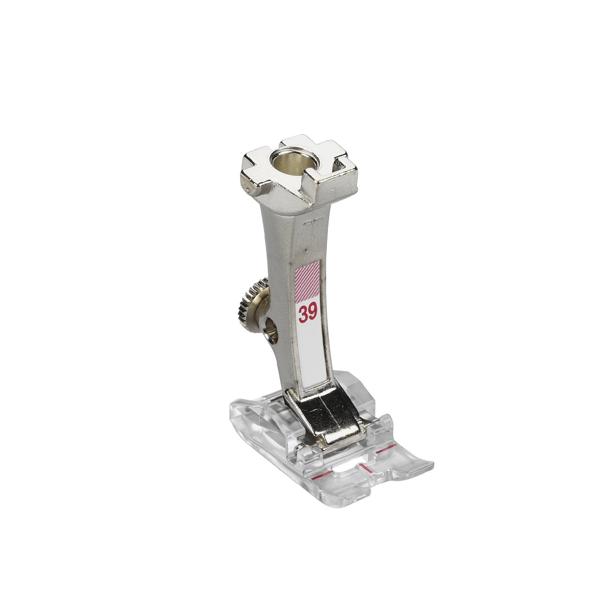 the foot acts as a guide for a couching cord or elastic thread, but can also be used as a visual guide.