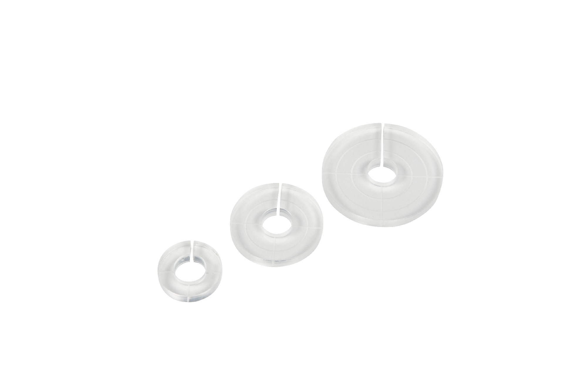 When working with the echo quilting clips, you sew along a plexiglass ruler to create decorative quilt patterns such as lines, feathers, circles etc. Due to the imprinted markings on the clips, exact working goes smoothly. They are to be used in combination with the Adjustable Ruler Foot #72 and the Ruler Kit.