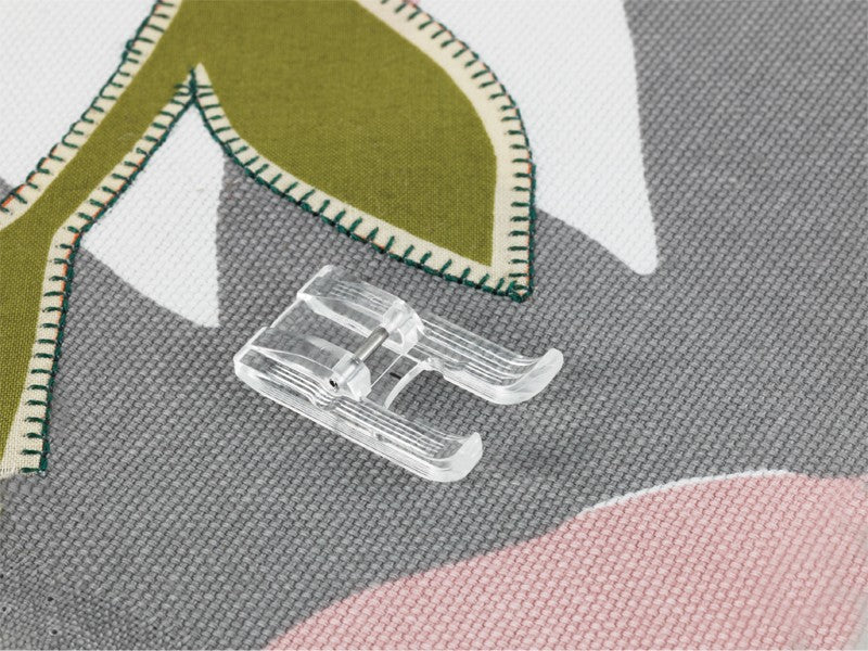 Use an open toe foot to get a wider view of where and what you are sewing. Great for applique, and small trims. quilting and more.