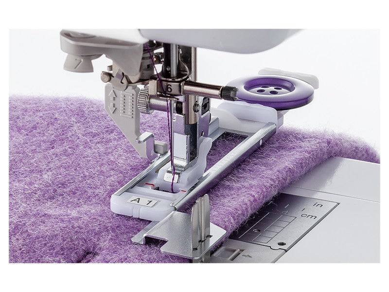 The binding buttonhole foot (for high shank computerised machines) is perfect for sewing buttonholes on tricky fabrics. Create beautiful sewn buttonholes easily on thin and thick fabrics. Includes stabilizing plate for thick seams, stretch fabric or staggered fabric. The maximum buttonhole length (diameter + thickness of button) is approx. 37mm (1-1/2")