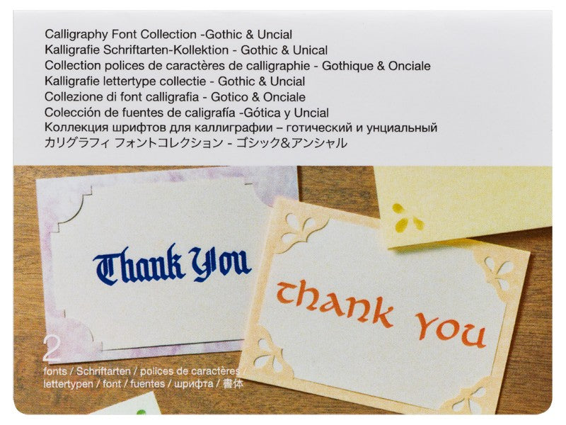 Calligraphy Font Collection – unlock Gothic & Unical fonts to use in conjunction with the Calligraphy Starter Kit (sold separately).