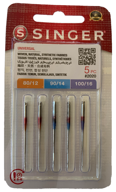 We have a 5 pack assortment available, featuring two size 80/11, two size 90/14 and one 100/16, the assorted pack will keep you ready to sew any woven fabric on your Singer Sewing Machine.
