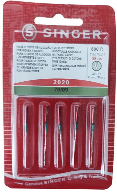 The Singer Woven Fabric Needle is a round (2020) sharp point needle which is thinner and sharper than a universal point. It makes a perfect straight stitch for woven fabrics.