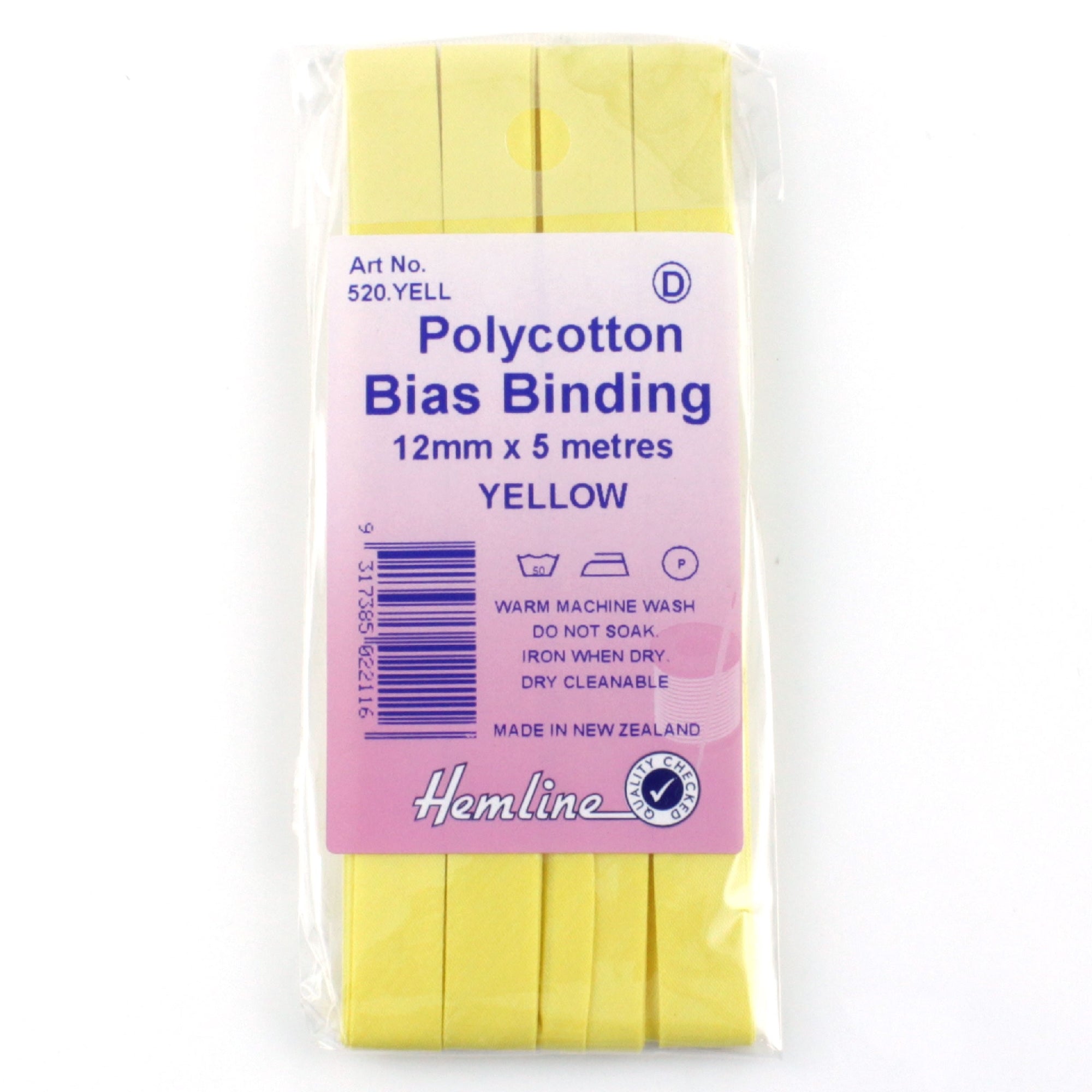 • Hemline Bias Binding 12mm Yellow x 5m