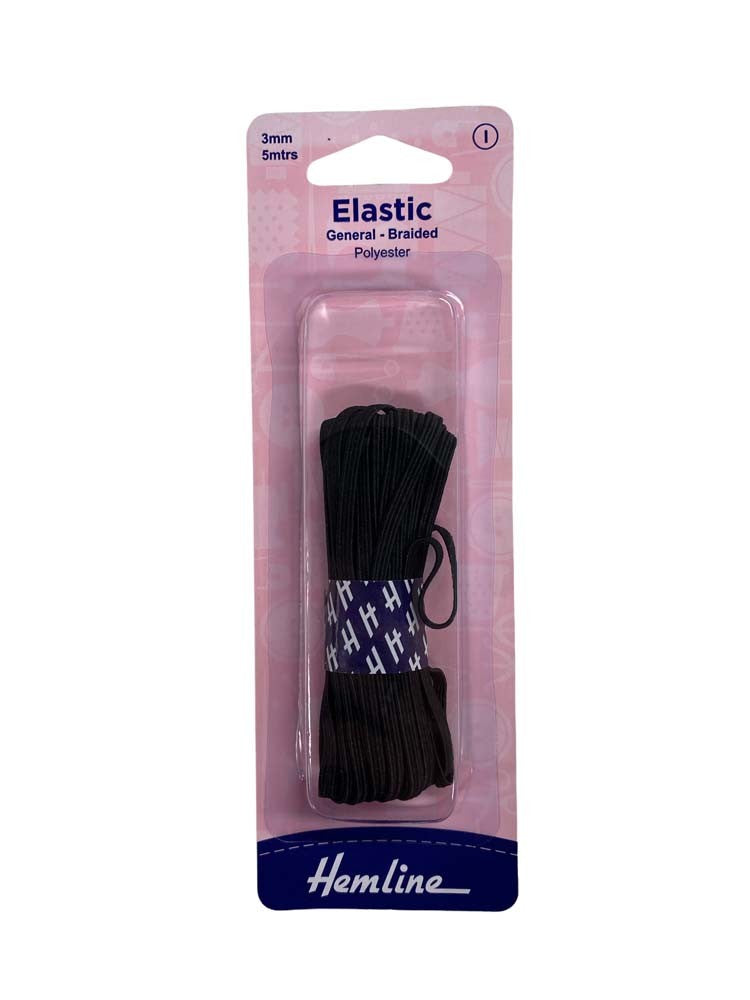• Hemline Elastic G/P Braided 3mm x 5m Black