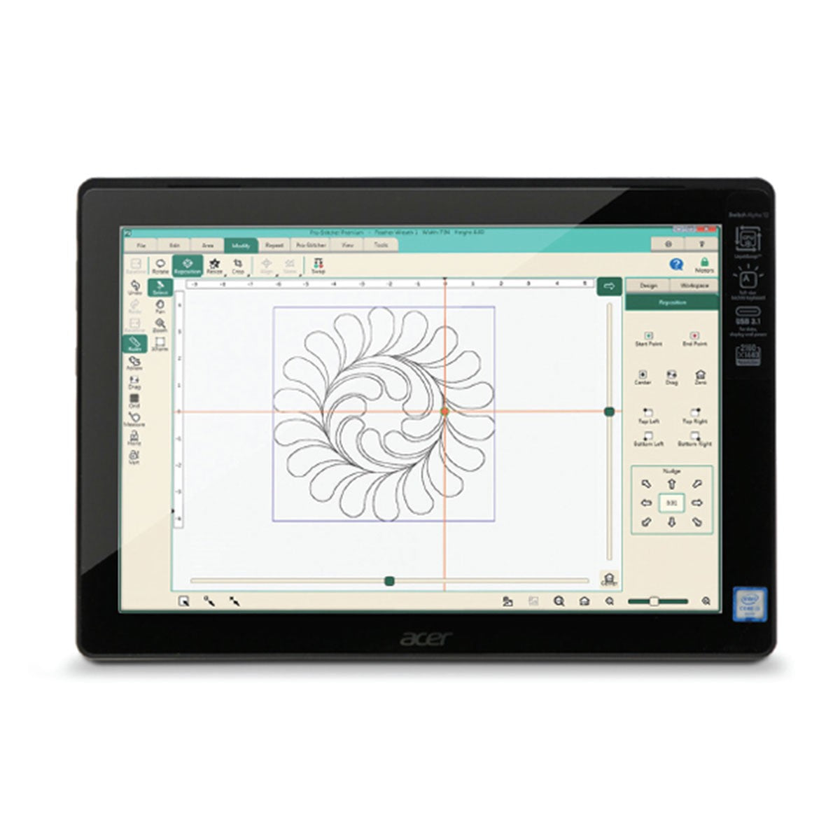 Easily operate HQ Pro-Stitcher from a lightweight touchscreen tablet computer that is conveniently mounted on top of the machine. The HQ Pro-Stitcher is available for the Simply 16, Avante 18, Amara 20, Fusion 24, Forte 24 or Infinity 26. Expand your quilting possibilities with this easy-to-learn, easy-to-use, computerised system and have fun finishing more quilts! Combine your own design skills with Pro-Stitcher Studio (included) to create one-of-a-kind quilting motifs.