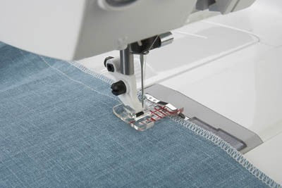 6. Start to sew. The guide will follow the edge of the fabric and the seam will be sewn with