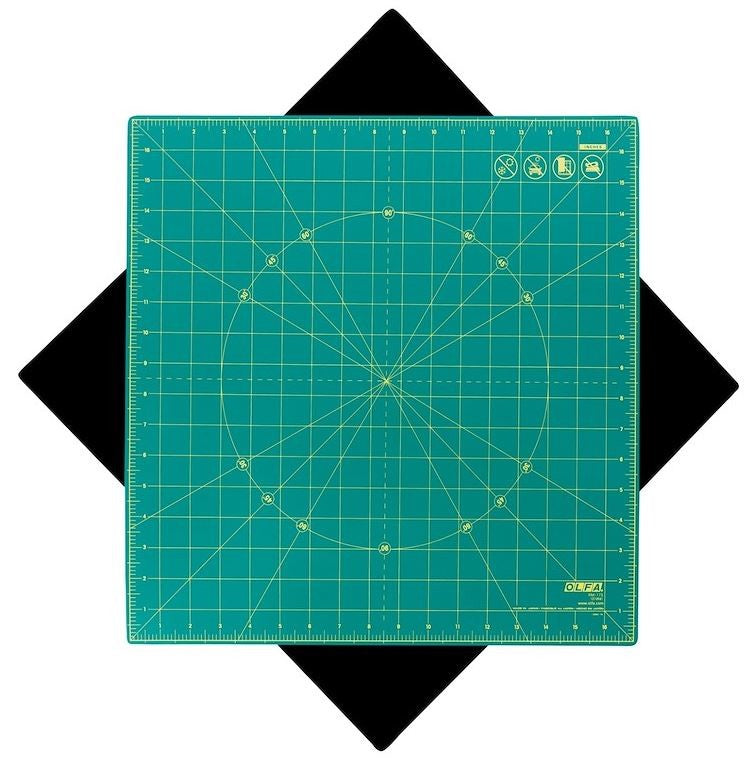 With this OLFA® two-piece rotating mat, you can end your days as a contortionist. The mat rotates so you dont have to. It features a non-slip, stationary bottom layer and an interlocking top cutting mat that rotates 360 degrees. Use the mat to squares, triangles, diamonds, circles or any shape that requires turning.