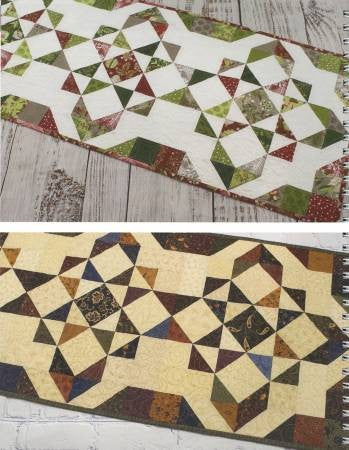 20 new Table Runners and Toppers patterns - 14 Table Runner & 6 Toppers Each Project shown in 2 colorways! Great for using up your Precuts & Scraps! Full Color, 100 Pages! The book also comes with a metal spiral binding, it will lay nice and flat while you use it.