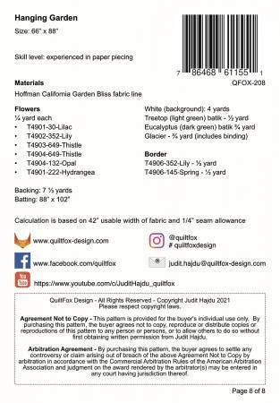 The pattern features the Garden Bliss fabric line from Hoffman California, but any other coordinated prints or batiks would make an equally beautiful quilt. I recommend this pattern to intermediate quilters with foundation piecing experience. Finished quilt measures: 66in x 88in