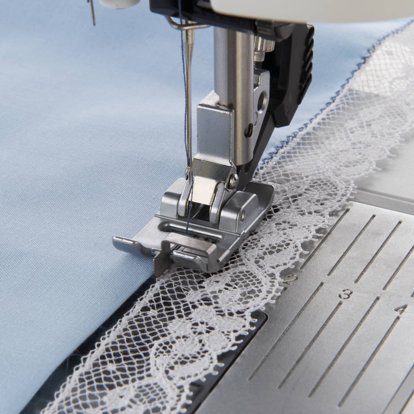 Perfect for precision topstitching and allows for easy attachment of lace or any trim to a finished fabric edge. Have endless possibilities to customize your projects!