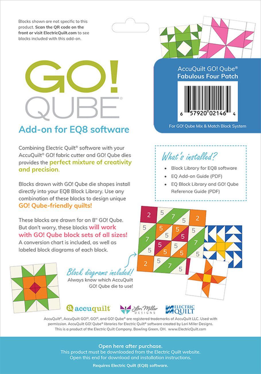 • Electric Quilt 8 Add-On Accuquilt Go! QUBE Fabulous Four Patch