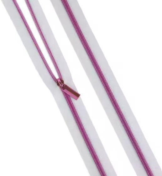 • Tula Pink Sallie Tomato Coil Zipper Nylon 3 yds (2.74m) and 9 Pulls White Tape & Pink Coil